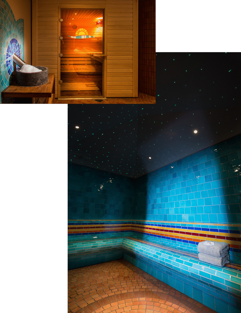 Sauna aux essences boisées, hammam aux vapeurs délicatement parfumées… Chaque détail invite à un lâcher-prise profond, dans une atmosphère feutrée où le temps semble suspendu.