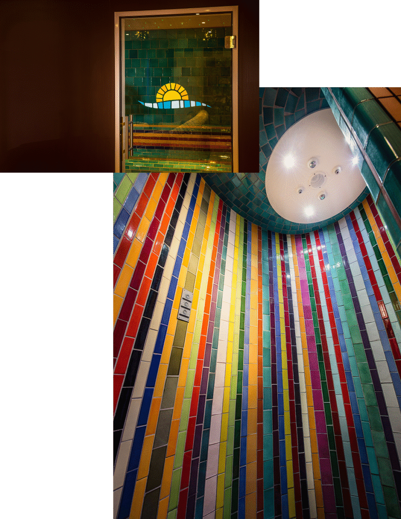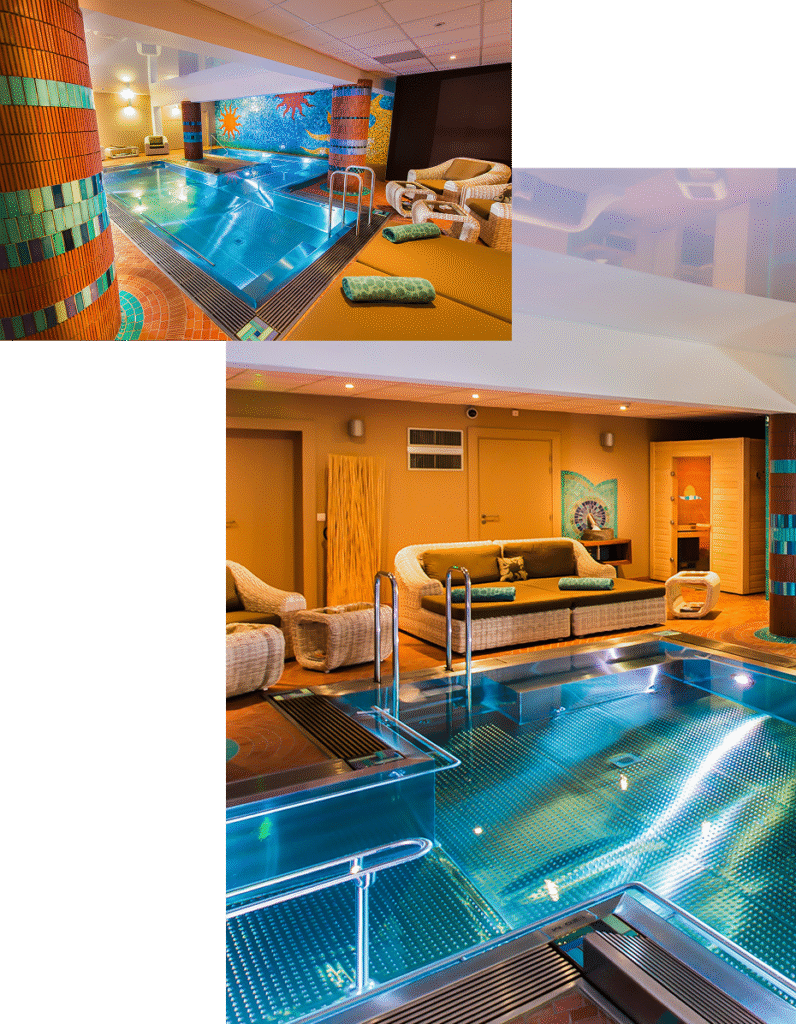 Dans une ambiance feutrée aux mosaïques solaires, laissez-vous porter par le mouvement de l’eau…